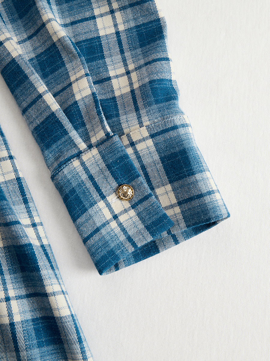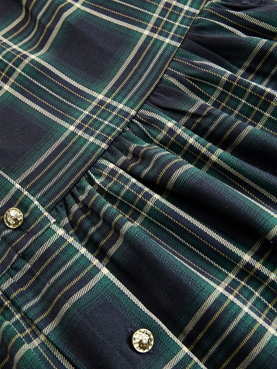 Helena – Vestido largo camisero con estampado de cuadros